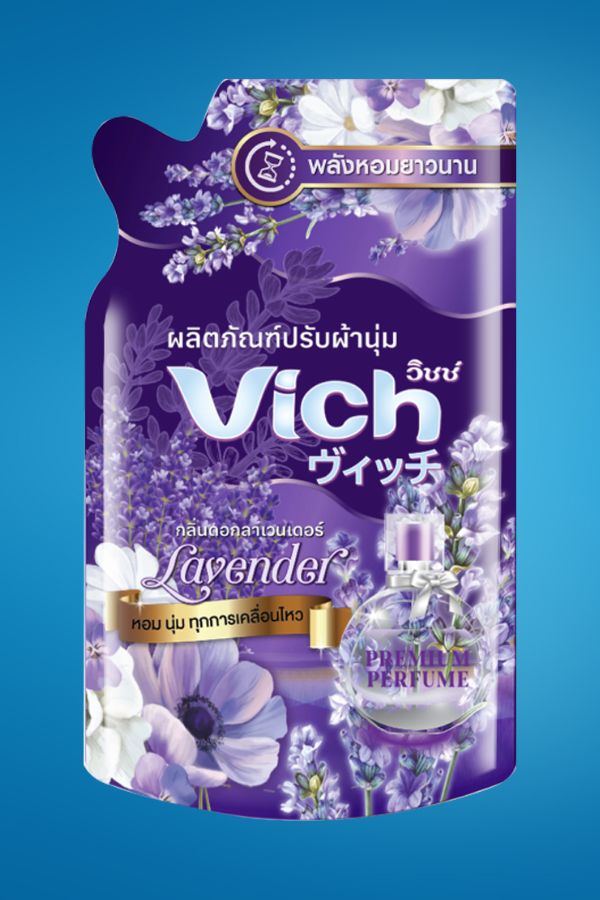 น้ำยาปรับผ้านุ่ม VICH กลิ่นลาเวนเดอร์ ความหอมสดชื่นยาวนานจากกลิ่นดอกไม้ ให้กลิ่นหอมละมุนและยังทำให้ผ้านุ่มพร้อมถนอมผ้า